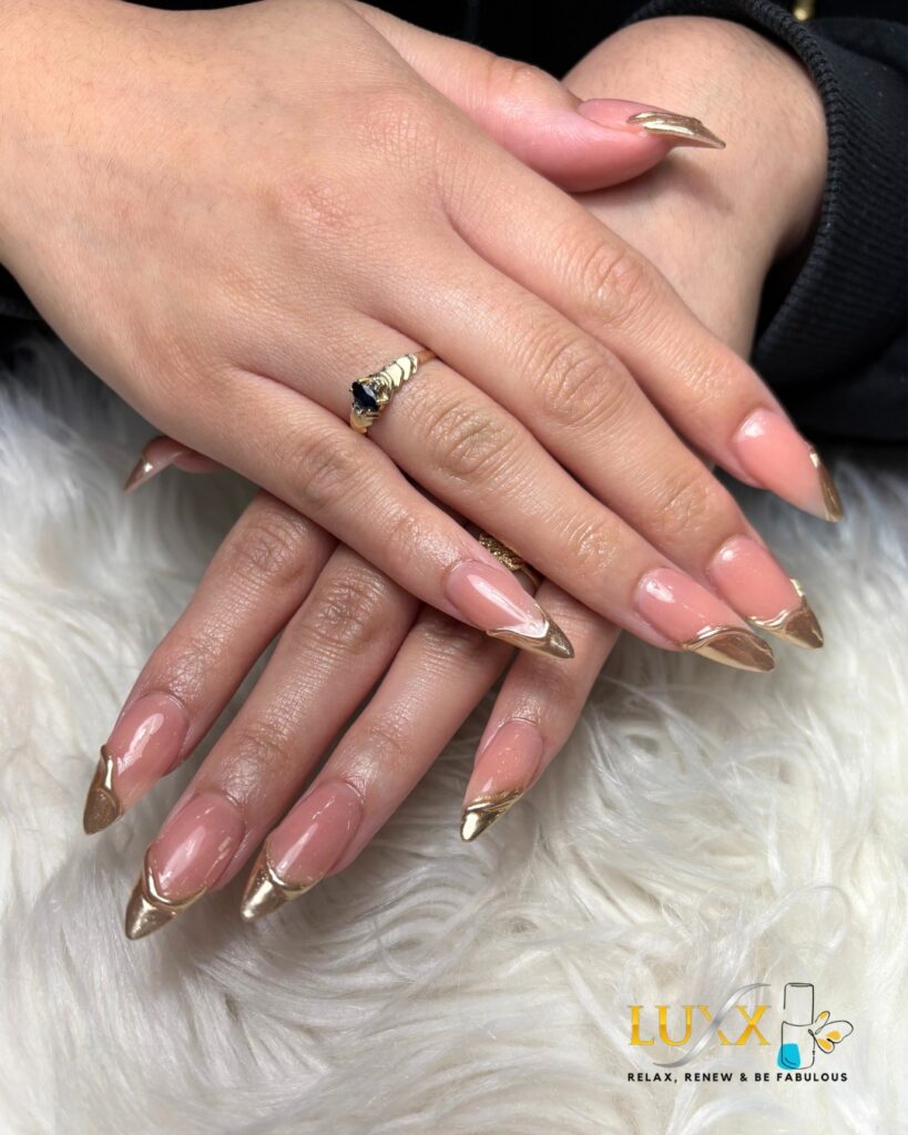 At Luxx Nail, Acrylic nails are crafted using a perfect blend of liquid monomer and powder polymer to form strong, extended nails. They’re ideal for anyone looking for durability and style—and yes, refills are always available to keep them looking fresh!